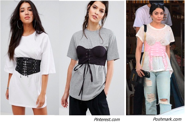 Guess how an oversized T-shirt borrowed from your brother/father/husband/boyfriend can be the most feminine item? The answer is only one word: a corset! Highlight your waist with any type of corset the way celebrities do and get into the spotlight straight away!