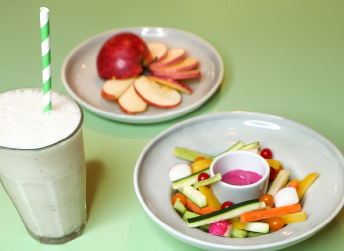 - The Mean Green Clean: A lemon, mint, spinach and avocado smoothie; a crudo vegetable salad with kale pesto dressing and avocado; winter vegetable crudités; and a green apple.