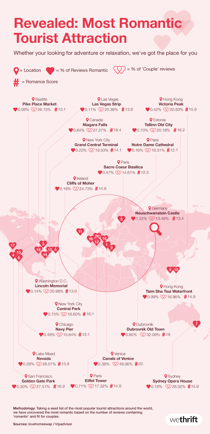 Methodology used to find the most romantic cities