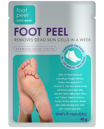 Step 5: Exfoliate! Remove all dry and dead skin cells with a foot scrub or better yet use the Skin Republic foot peel which removes dead skin cells after 7 days. Gently push back cuticles with a cuticle stick.