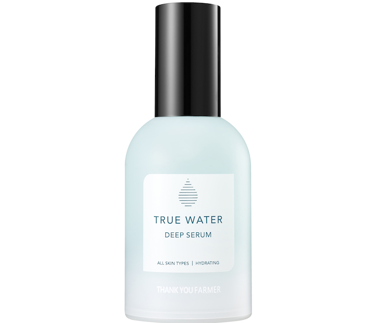 Hydration (inside and outside) is an absolute necessity for plump, glowing skin that radiates from within. This means drinking plenty of water and ensuring you use sufficiently hydrating products in your routine, even if your skin type is oily. Incorporating a light but deeply hydrating product such as this True Water Deep Serum, which is hyaluronic acid-based serum from natural Korean brand Thank You Farmer.