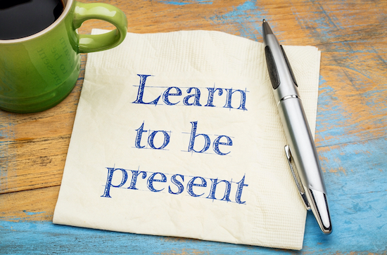 - Being in the here-and-now (not somewhere else in terms of thinking about the past or the future).