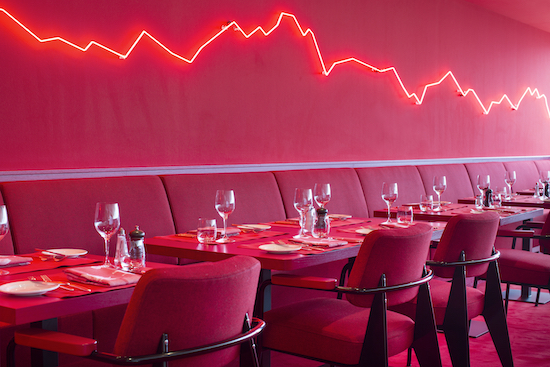 Saltz restaurant is another work of art. Artist Rolf Sachs designed the dining space to reflect the Swissness; the soft, bristly white neon light running along a red wall was made to evoke the Alps’ silhouette, bringing a comfortable atmosphere for guests to relax and unwind while enjoying authentic dishes.
