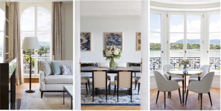 The Woodward’s 26 spacious suites have been designed to the highest specification and, while each is different, they all share a harmonious neutral colour palette, contrasted by hues of blue. The colours brighten and deepen as the sunlight’s reflection on Lake Geneva shifts throughout the day.