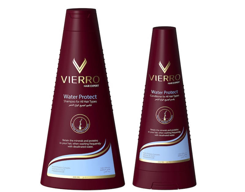 Vierro’s Water Protect range, which is a local brand, is specially designed taking into consideration the climatic conditions of the Middle East. It is a careful mix of oils and proteins to protect the hair and help it retain the minerals and proteins that are usually lost when washing frequently with desalinated water.